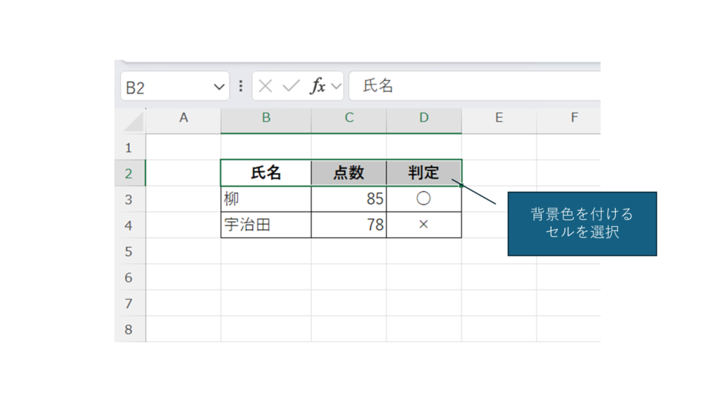 背景色を付けたいセルを選択する