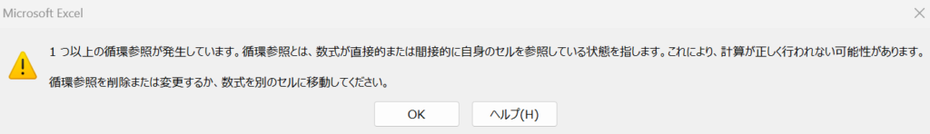 これは、自分自身のセルを数式の中で参照してしまい、計算が終わらなくなる「無限ループの状態」を意味します。