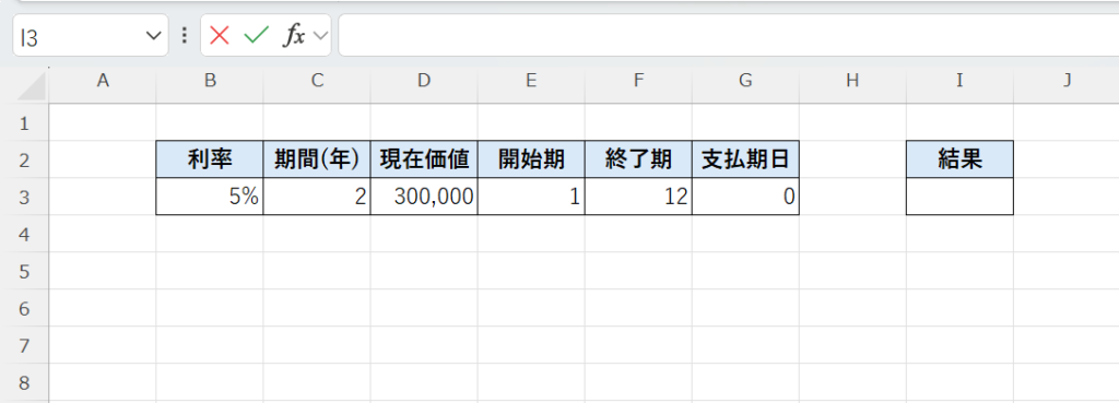 年利なら月単位にするために「12」で割るなど、期間単位に合わせる必要があります。