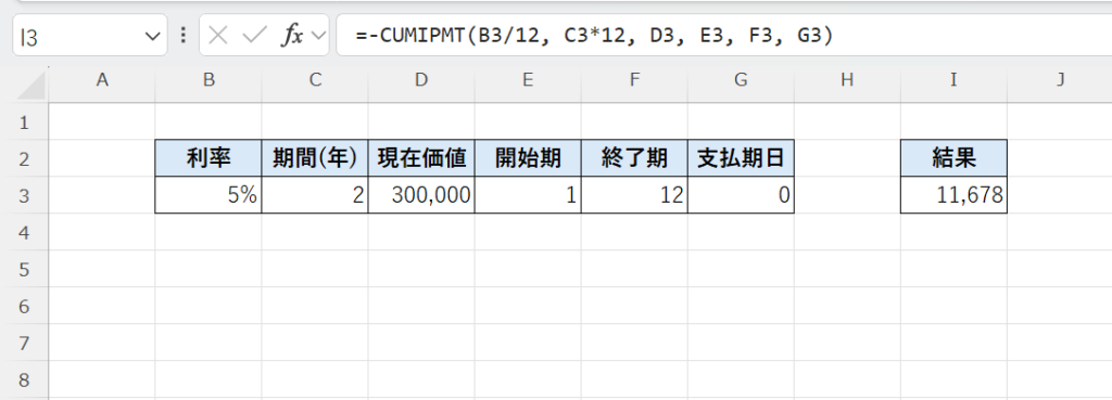 Excel関数入門:CUMIPMT関数の使い方【一定期間の利息合計を求める】