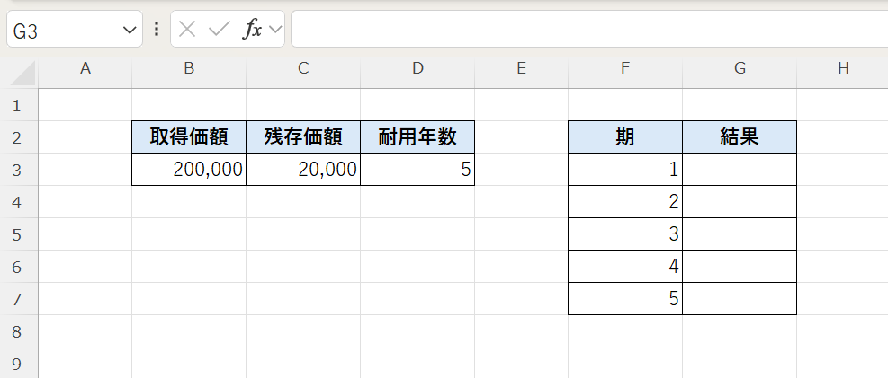 | DDB関数 | 倍額定率法で減価償却費を求める |