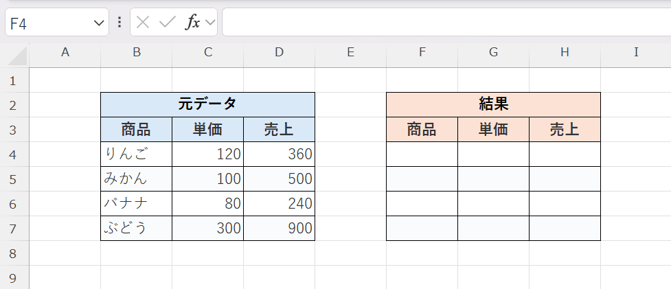- 返される結果はスピル範囲になるため、隣接セルにデータがあるとエラーになる