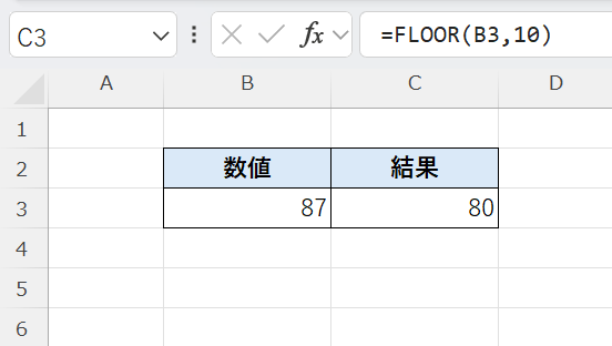 FLOOR関数 は、数値指定の切り捨てを行う関数です。