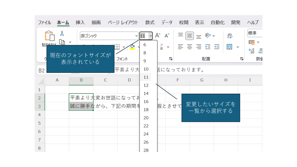 Excelでフォントサイズを変更する方法はとても簡単です。