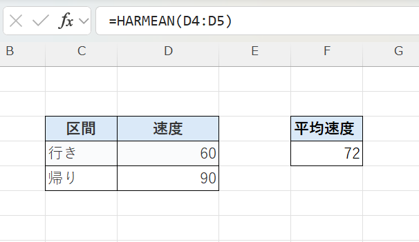 そんなときに使えるのが HARMEAN関数(調和平均) です。