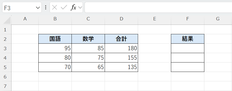 - 1行目(国語95点+数学85点=180点)