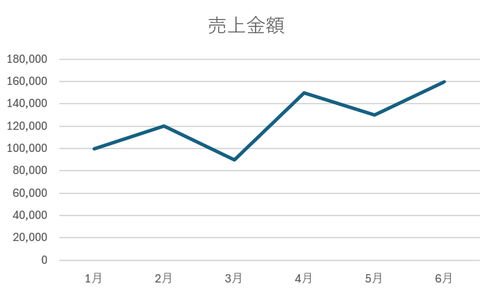 売上やアクセス数、気温などの推移を表すときに最も使われます。