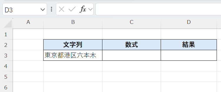 セルB3に入力されている”東京都港区六本木”から”港区”を抜き出すには