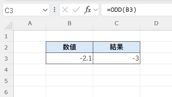 ODD関数は、常に 絶対値が大きくなる方向(0から遠ざかる) に切り上げることが特徴です。