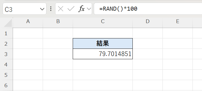 =RAND()*100とすることで、値の範囲を拡張し、0以上100未満の小数をランダムに生成できます。