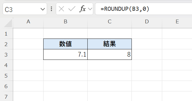 =ROUNDUP(7.1, 0) → 8