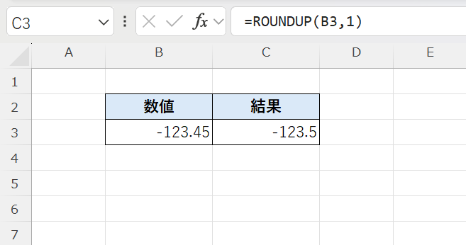 =ROUNDUP(-123.45, 1) → -123.5