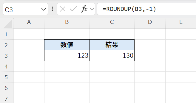 ROUNDUP関数は、指定した数値を常に切り上げて丸める関数です。