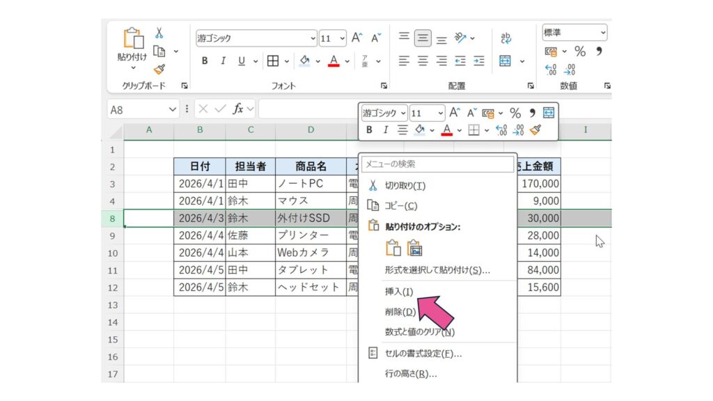方法②:右クリックから挿入する