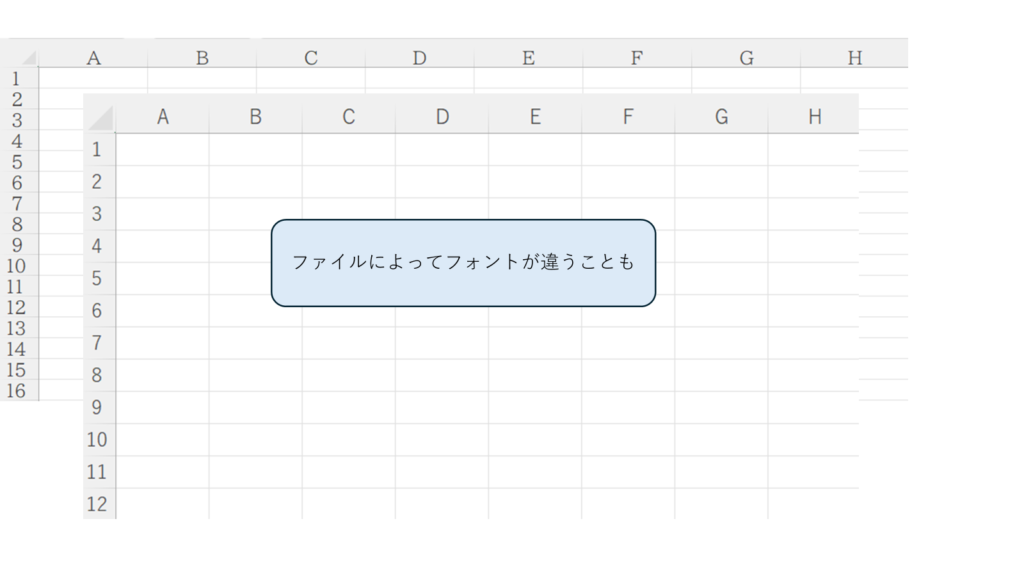 Excelで作業をしていると、列のA・B・Cや行番号の1・2・3の文字のフォントがExcelファイルによって違うことがあります。