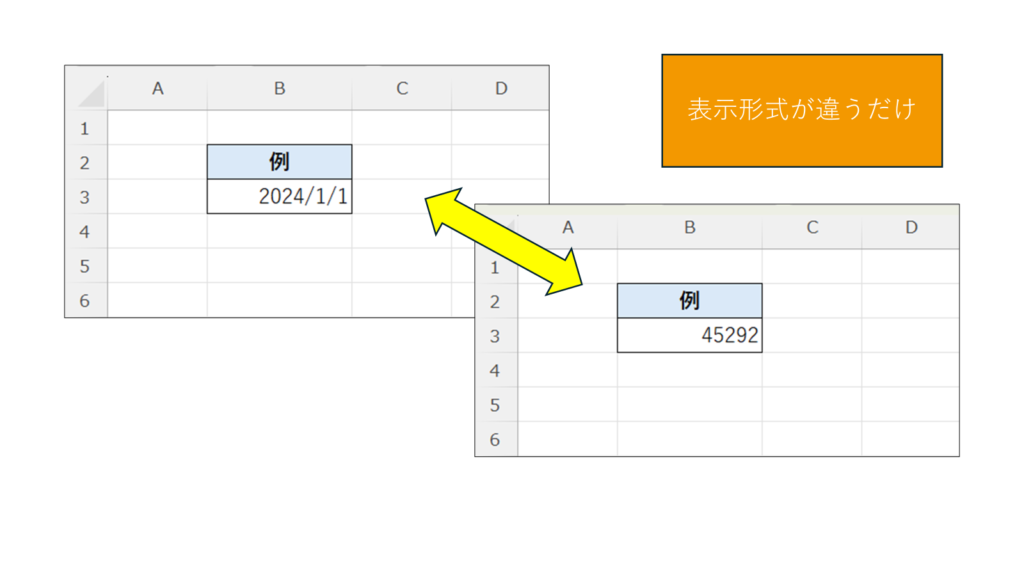 これは、Excelが日付・時刻を「見た目」とは別に「内部的に数値で管理している仕組み」です。