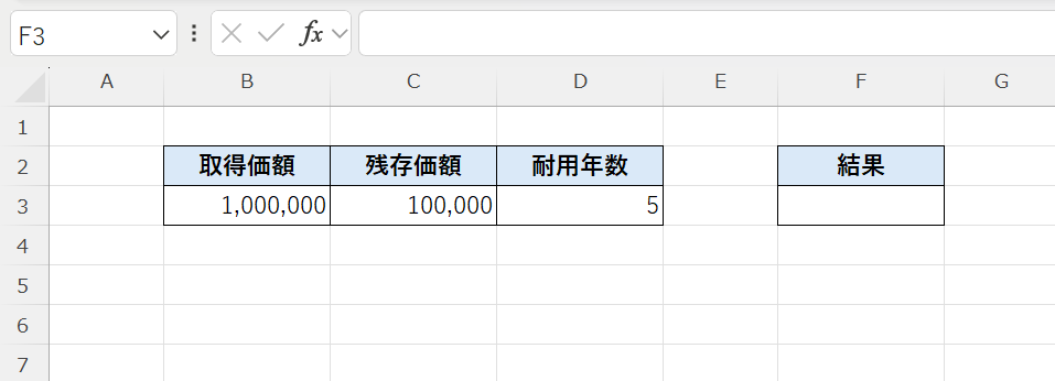 - 結果は「1年あたりの減価償却費」になる