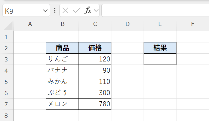 たとえば、商品名「みかん」を入力するとその価格を自動で表示したい場合👇